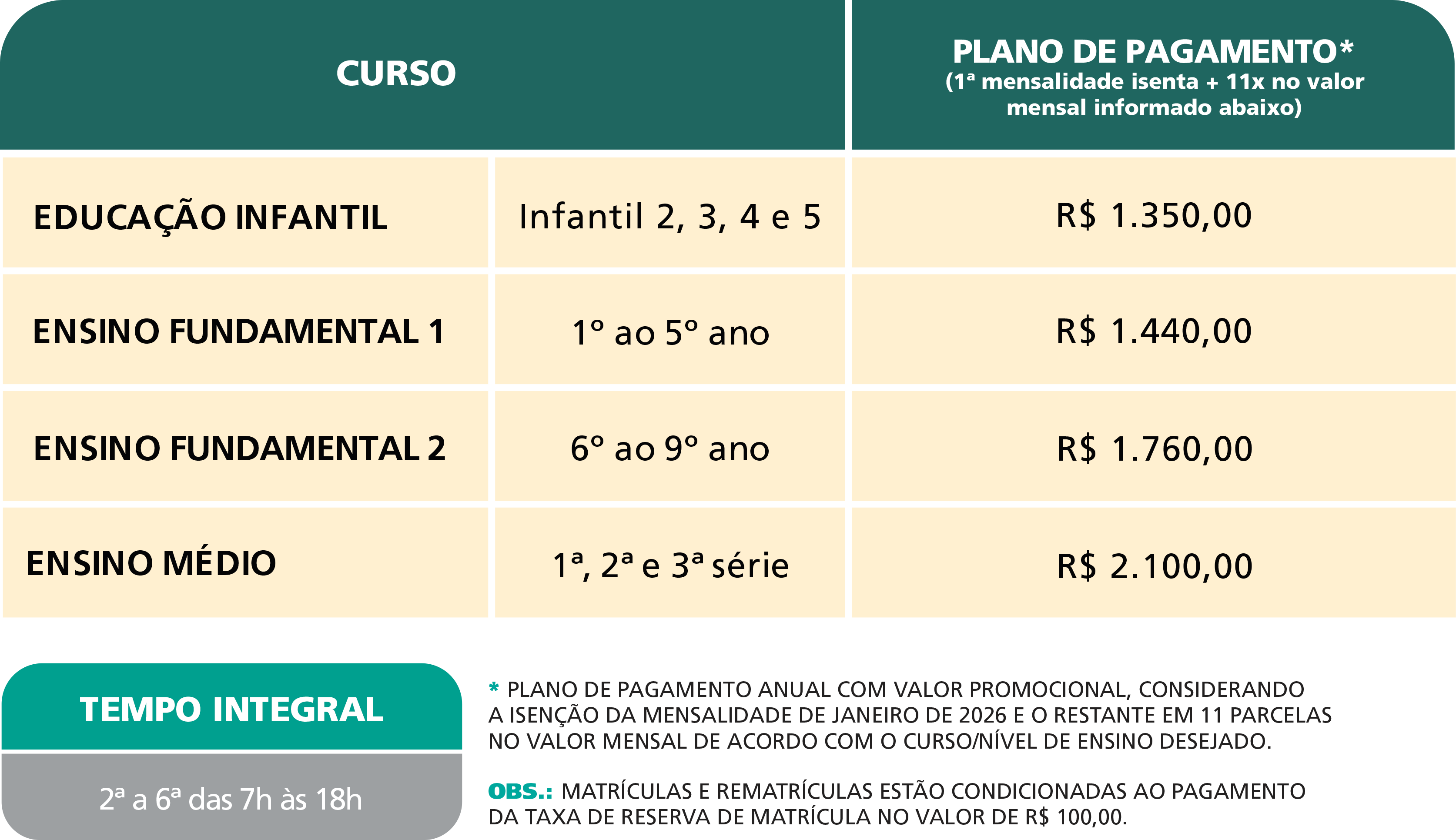 A primeira mensalidade é por nossa conta, e as demais terão preço especial.